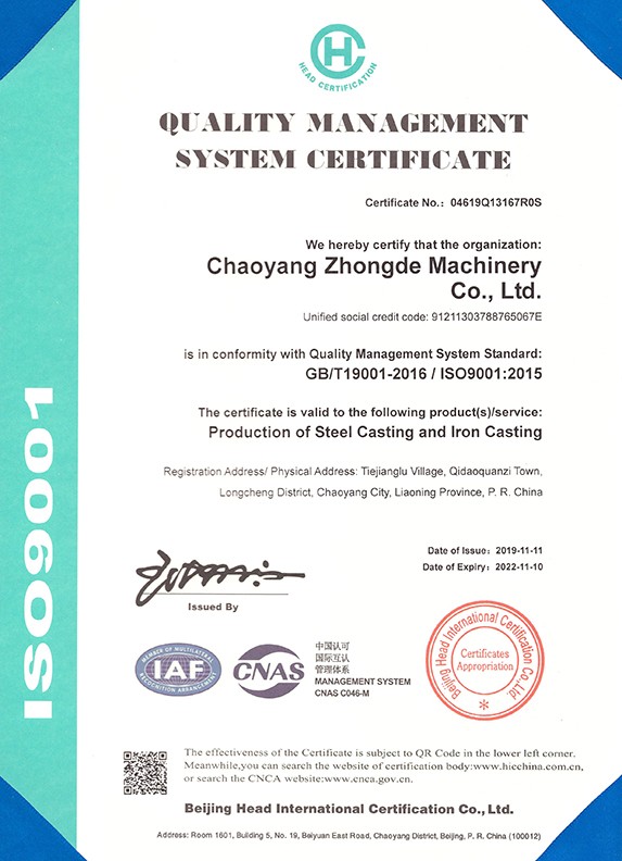 朝陽中德機(jī)械有限公司座落于有著“東方佛都”之稱的三燕古都,歷史文化名城——朝陽,具體位置朝陽市龍城區(qū)七道泉子鎮(zhèn)鐵匠爐村。公司創(chuàng)建于2006年5月是一家以鑄鋼件、鑄鐵件,集按用途設(shè)計(jì)、開發(fā)、生產(chǎn)、銷售于一體的,為機(jī)械設(shè)備配套的生產(chǎn)型公司。公司注冊資金1000萬,固定資產(chǎn)投資1480萬元,主要生產(chǎn)設(shè)備GGW-5T,GGW-10T,GGW-10T中頻感應(yīng)爐;GDY-13C高溫電阻窯、GDY-9.5C電阻窯,M4000型直讀光譜儀,DP-3985型硬度測試儀,倒置式金相顯微鏡、拉伸試驗(yàn)機(jī)、超生波探傷儀,檢測手段完備。